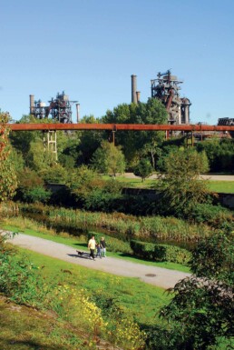The Ruhr area is a sprawled urban landscape with motorways, train lines and waterways that had huge open spaces after the closure of many industrial plants. The Duisburg-Nord Landscape Park project is an outstanding example of a new type of industrial park. It shows how landscape, working and living space can be reclaimed from wasteland with a high recreational value.