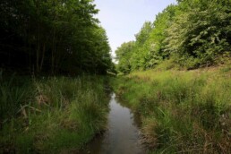 Like other former river and stream courses in the Emscher region, the Deininghauser stream was an open, untreated wastewater course. With a total length of 9.5 kilometres, it led the wastewater through Castrop-Rauxel and flowed into the Emscher via the Landwehr stream. The renewal was intended to restore the stream to its natural condition and network it with other biotopes via streamside meadows. For this, the contaminated water and clean water had to be separated and new – now underground – wastewater canals had to be built. The location of the stream course in the heavily populated urban area of Castrop-Rauxel was a particular challenge. By uncovering the previously piped sections, the stream was to be brought to life as an urban waterway. The renewal included building cycle paths, bridges and new connecting routes between the landscape and the city. Today, no one would think that this was a former wastewater canal. The ecological renewal forms the backbone of an outstanding new landscape space in the eastern Emscher region.