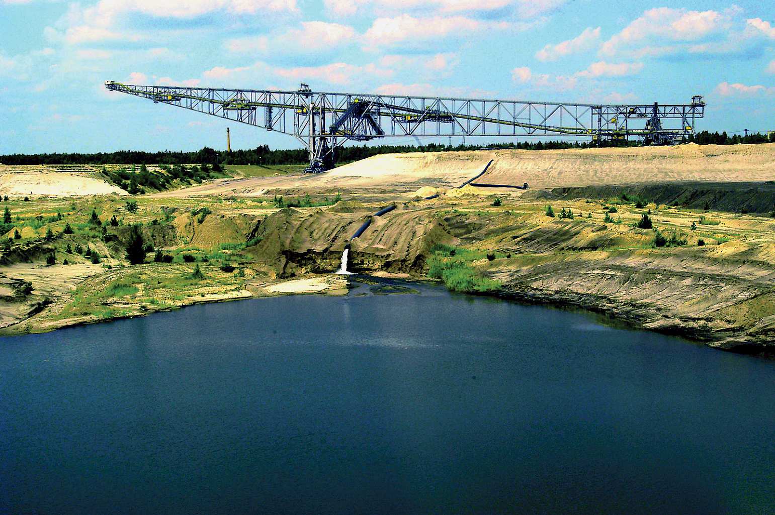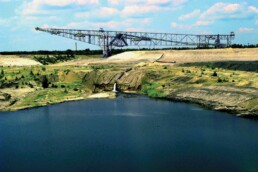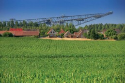 The F60 spoil conveyor bridge in Lichterfeld near Finsterwalde is the biggest mining construction ever built. The technical masterpiece, 500 metres long and weighing 11,000 tonnes, was saved from blasting at the end of the 1990s. Today, the “Horizontal Eiffel Tower” is an exhibition mine and a tourist magnet of a very special kind.