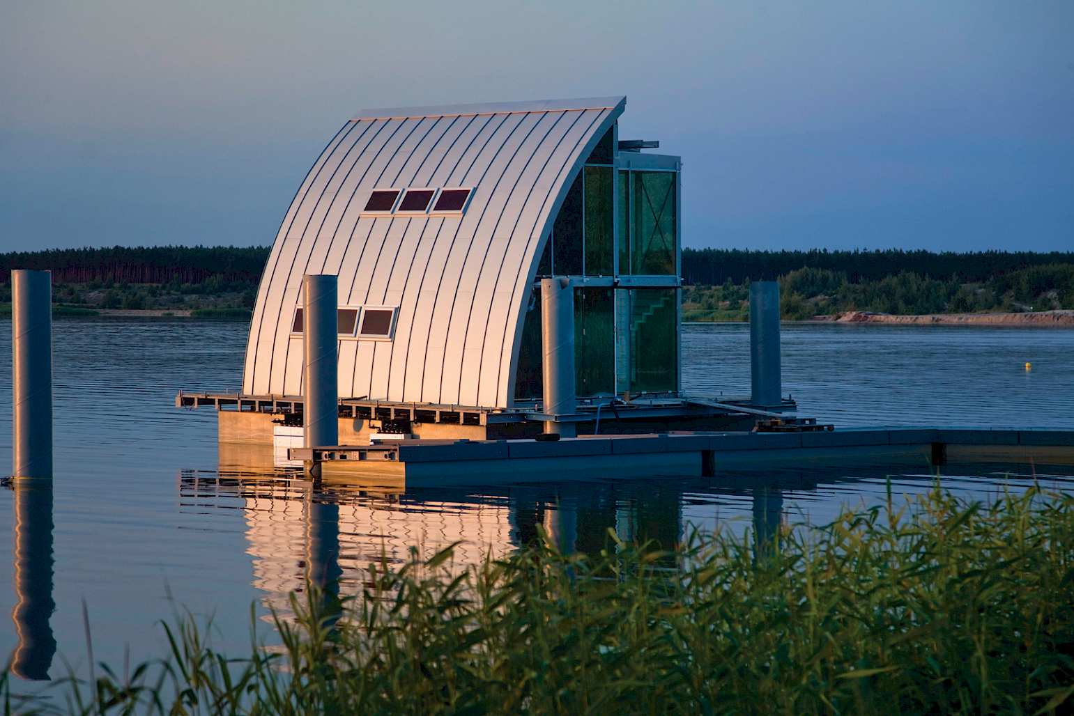 The German reunification marked the end of the open-cast mining industry in the Lower Lusatia region, bringing forth a new lake landscape that fundamentally changed the face of the region. With the vision of the IBAIBA Internationale Bauausstellung see for floating architecture, the craft of engineering, which had previously concentrated on mining, was now directed towards artificial lakes.
