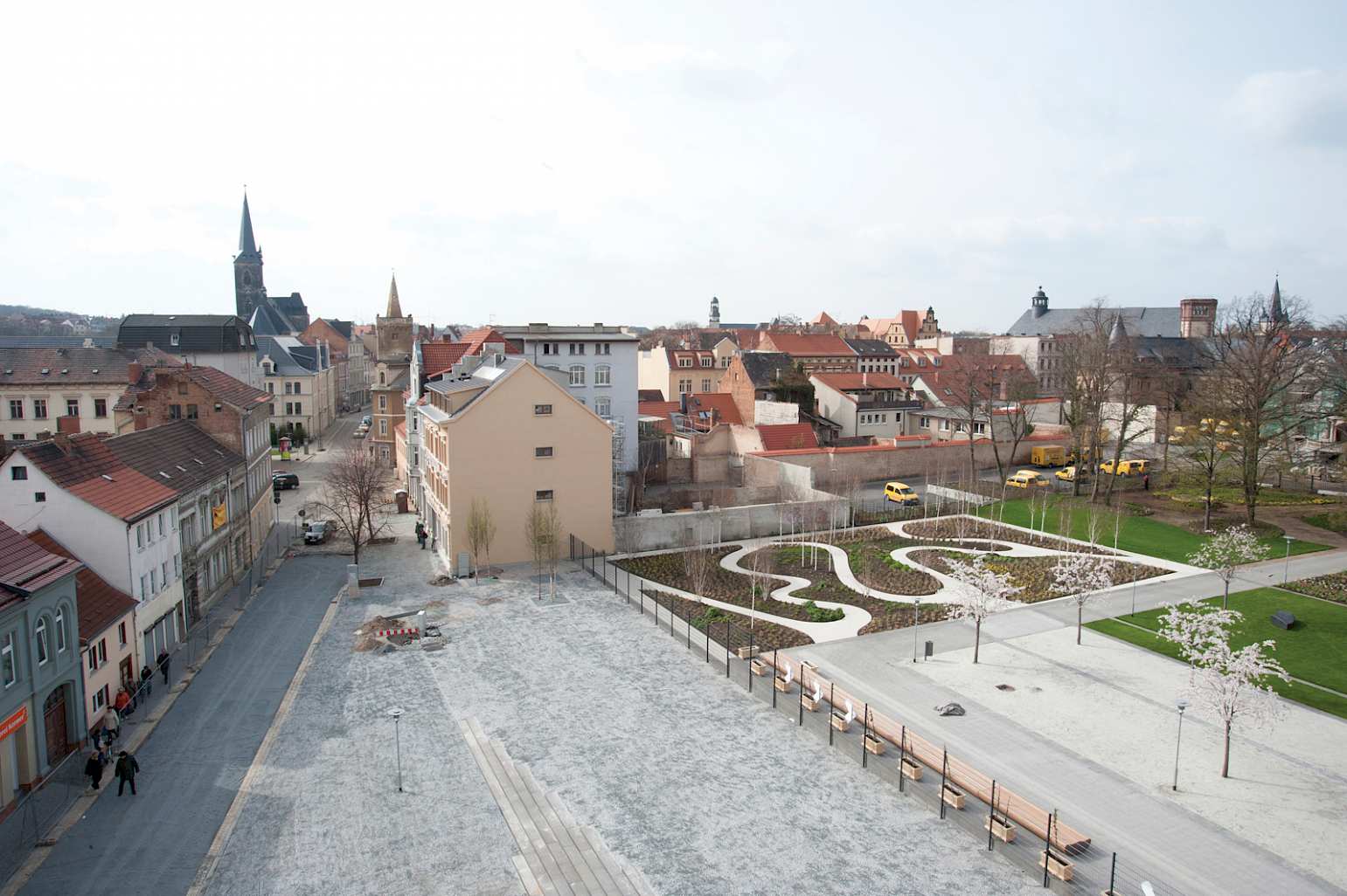 Aschersleben gradually reconquered its city centre: Historic buildings were refurbished, administrative offices, educational institutions and shopping centres were relocated to the city centre and existing buildings were supplemented with individual new buildings. The old town once again offered everything its citizens needed in a compact area. The Bestehornpark educational center was built on a central industrial urban wasteland through modification, refurbishment and addition of a new building. Two primary schools, a secondary reform school and an advanced training institute for nursing and geriatric care moved in. As part of the 2010 Landesgartenschau (state garden show), the entire site was redesigned as a green school campus and public recreation area.