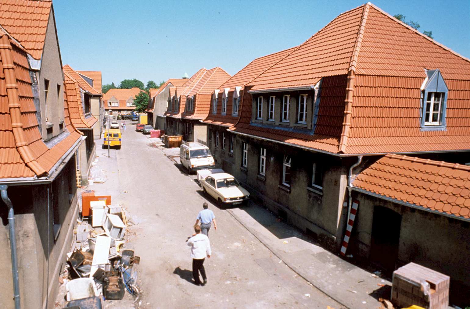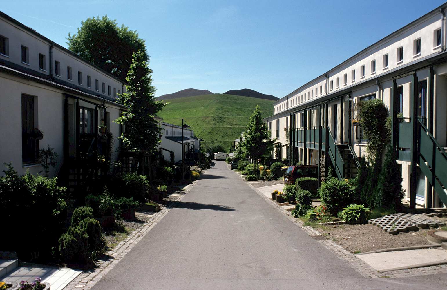 Arbeitersiedlungen entstanden in der Zeit des industriellen Wachstums. So wurde zwischen 1897 und 1919 für die Bergarbeiter in Gelsenkirchen die Siedlung Schüngelberg errichtet. Eingekesselt zwischen Bergwerk, Halde, Abwasserkanal und Zechenbahn hatte man den Siedlungsstandort in den 1970er Jahren totgesagt. Sein Abriss konnte jedoch verhindert werden. Die denkmalgerechte Erneuerung der 308 Bergarbeiterwohnungen, verbunden mit einem ergänzenden Wohnungsneubau, gaben dem Ort schließlich eine neue Perspektive. Der Neubau eines Kindergartens und die Gestaltung einer neuen Siedlungsmitte mit Platz, Läden und Begegnungsräumen trugen dazu erheblich bei. Eine neue Reihenhausbebauung nimmt Charakteristika der historischen Zechensiedlung auf. So konnte die Siedlung ihren unverwechselbaren Charakter erhalten.